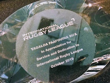 Congratulations Rugby League Samoa GOVERNOR Tagaloa Fa'afouina Su'a recognition of his dedication and professional services to Rugby League International Board of Directors presented during this weeks AGM in Darling Harbour, Sydney.