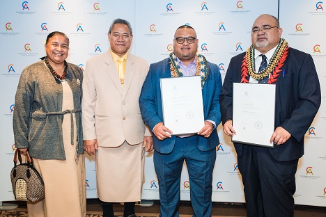 Fa'afouina alongside the Controller and Auditor General of Samoa, Fuimaono Gafatasi Camillo Afele accepted their induction with a large support contingent applauding their achievement. Su’a credit his wife and family and also his work colleagues for their support. Praise the Lord..Agalelei le Alii!