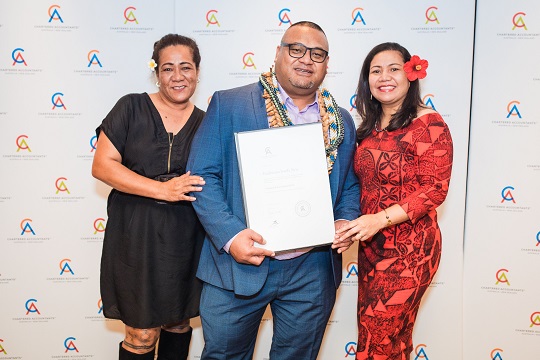Tagaloa Fa'afouina Su'a inducted in the college of Chartered Accountants (CA) for Chartered Accountant Australia & New Zealand (CAANZ) last night at a ceremony held Cordis Hotel in Auckland CBD.